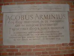 Memorial stone for Jacobus Arminius at St. Peter's Church, Leiden.