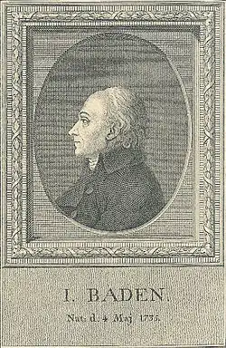 Jacob Baden (4 May 1735 – 5 July 1804) was a Danish philologist, pedagogue, and critic. He was a professor of rhetoric and Latin at the University of Copenhagen in 1779. He was the first person to lecture on Danish grammar at the university between 1782 and 1783. He was the editor of the "University Journal" from 1793 to 1801.[1][2]