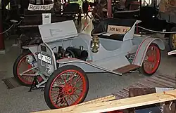 Ellehammer founded the company that bore his name in Copenhagen in 1909 and began producing automobiles. Between 1909 and 1910, several small cars were built, which were also offered and sold. These were two-seaters. An air-cooled two-cylinder engine was combined with a friction gear and drove the drive axle via belts. In 1913, a model with a three-cylinder engine and 12 hp followed, which remained a prototype. Production ended in 1913.[2][3]