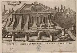 Reconstruction of Solomon's Temple based on Jacob Judah’s description, from Juan Caramuel y Lobkowitz, Architectura civil recta y obliqua, Vol. III. Part I, Plate A.
