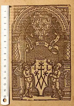 Van Liesvelt married Maria or Marie Ancxt (or Ancxten). The couple had three children, one of whom, Hans, later also became a printer and publisher.[10] When in 1545 the persecution of heretics reached its peak, the bailiff of Antwerp charged van Liesvelt and had him arrested. The exact cause or reason of the prosecution or nature of the accusation is not entirely clear. For a long time it was assumed that the woodcut from chapter 4 of Matthew was at the basis of his problems. It depicts the scene in which Jesus is tempted by the Devil in the wilderness. The Devil is depicted as a bearded monk with bearded monk goat's feet, wearing a robe and holding a rosary. Many regarded this print as a sarcastic indictment of the clergy who were often blamed for hypocrisy. However, the Bible states about the apostle Paul that the Devil pretends to be an 'angel of light' (2 Corinthians 11:14). From this point of view, the woodcut could have been a reference to this verse and should not be the basis for any suspicion of heresy. In fact, the same woodcut was later used in authorised Catholic Bibles.[8] It is more likely the new marginal notes in the 1542 edition caused his legal problems. One read that 'Salvation comes through Jesus Christ alone', which was clearly a Lutheran position in contradiction with the Catholic church's position that salvation can only come through the church. During his trial van Liesvelt was assisted by two lawyers. They argued that all his publications, with the exception of the Bible edition from 1526, had been issued with an official license: "Cum Gratia et Privilegio", which had given the printer the publishing permission. The argument was not successful, and van Liesvelt was sentenced to death.[8] He was beheaded on 28 November of that year, at the age of 56.[3]