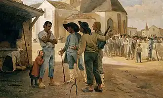 After the Battle of Saumur and capture of the city, the insurgency had taken such a level of importance that the Royalist leaders thought it necessary to ensure the agreement of their operations and give command to one. Beloved by the troops, Cathelineau was proclaimed by Louis Marie de Lescure and Maurice d'Elbée as generalissimo of the Catholic and Royal Army by the assembled heads the Vendée on 12 June 1793. The peasants were further inspired by one of them being given army command.[4]
