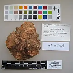 - ^ Yaldwyni, John Cameron; Beu, Alan Glenn (1977). "Appendix 1: The fossil occurrence of Jacquinotia edwardsii". New Zealand Journal of Geology and Geophysics. 20 (2): 237–243. Bibcode:1977NZJGG..20..237Y. doi:10.1080/00288306.1977.10420702.