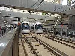 The Elifelet station of the Red Line of the Tel Aviv Light Rail System is located just south of the historic Jaffa train station. The Red line reuses part of the original 1891 railway alignment next to the Neve Zedek neighborhood, which also includes a rail track park.