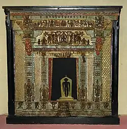 According to Jainism, time is without beginning and eternal. The kālacakra, the cosmic wheel of time, rotates ceaselessly.[89] The wheel of time is divided into two half-cycles, utsarpiṇī (ascending, a time of progressive prosperity and happiness) and avasarpiṇī (descending, a time of increasing sorrow and immorality).[90][91][92]