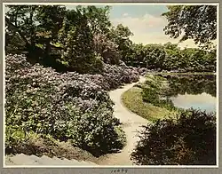 Shortly after the founding of Boston and Roxbury in 1630, William Heath's family and three others settled on land just south of Parker Hill in what is now Jamaica Plain.[1] In the next few years, William Curtis, John May and others set up farms nearby along Stony Brook, which flowed from south to north from Turtle Pond (in Hyde Park) to an outlet in the Charles River marshes in the current filled-in Fens area of Boston. John Polley followed with a farm which he purchased from Lt. Joshua Hewe in 1659 at the site of the present-day Soldier's Monument at the intersection of South and Centre streets, closer to the "Great Pond", later known as Jamaica Pond. Later, for services rendered during the Pequot War, Joseph Weld received a grant of 278 acres (1.1 km2) of land between South Street and Centre Street. His son John built a home along South Street in the area which is now the Arnold Arboretum. The Weld family continued to live in the area for many generations.[3]