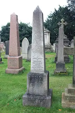 He died at home, Woodville House on Canaan Lane (south of Newbattle Terrace) in south-west Edinburgh and is buried in Dean Cemetery in Edinburgh in the central southern section with both his wives.