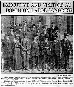 ![]() Watters (front row, third from left) at the Dominion Labor Congress, 1914 | |