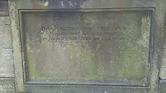 He is buried in Ramshorn Cemetery on Ingram Street in Glasgow.[1] The grave lies on the western wall of the main eastern entrance, close to where the cemetery widens.