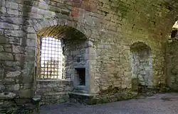 After Finnart was beheaded at Edinburgh, James V seized Craignethan Castle. He installed a garrison led by James and David Orrok.[23] The silverwork from the chapel was taken to Edinburgh and engraved by John Mosman with the arms of the king's infant eldest son, James, Duke of Rothesay.[24] James V redeemed two silver flagons from Mungo Tennant, a merchant who had lent Finnart money which he used to pay for hauling timber to the building work at Stirling Castle.[25]