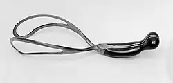 As a medical inventor he altered the standard obstetrical forceps, introducing the perineal curve to the handle (1868),[2][6] and invented shot and coil sutures,[6] the polyptrite (a device for destroying endometrial polyps; 1862),[2][6] the sigmoid repositor (a device for treating chronic uterine inversion; 1878),[2][6] and a glass-tube applicator for menstrual tampons.[8] The repositor – a wooden cup supported by elastic attached to sigmoid-shaped metal supports – was the most successful device for cases of uterine inversion,[9] and was still remembered in 1967.[7] He invented an apparatus for blood transfusion, with silver cannulae connected by rubber tubing with a central bulb for pumping,[2][10] with which he performed a transfusion directly between a woman with postpartum bleeding and her coachman in 1872.[8][9] He also experimented unsuccessfully with transfusing animal (lamb) blood.[11] He was among the first to use chloroform as an anaesthetic in childbirth,[1] and was a proponent of using electricity to treat diseases of the pelvis, particularly uterine cancers, following Georges Apostoli.[1][4][6]