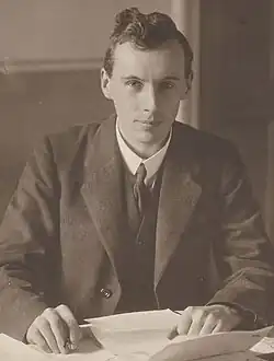 James Hogan was born 16 October 1898 at Cloonmain, Kilrickle, near Loughrea, County Galway,[1][2][3] the seventh child among four sons and five daughters of Brigid Hogan (née Glennon) and Michael F. Hogan, a farmer and chief inspector with the Estates Commission. James Hogan's older brother, Patrick Hogan, would become Minister for Agriculture in the Cumann na nGaedheal government. Their sister Nora was a founding member of the Missionary Sisters of St. Columban in 1922.[2] Hogan grew up in a family that encouraged intellectualism and once remarked that, amongst his own people, "it was as natural to be reading as to be eating one's dinner".[3]
