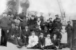 The crew of Mona's Isle (circa 1900). Second Officer James Teare can be seen seated at the far left of the photograph.