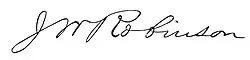 Robinson was a Presbyterian, and an elder in the church beginning in 1855.[1] He was a member of the Board of Trustees of the College of Wooster, which conferred a LL.D. on him in 1896.[1] He was married to Mary J. Cassil of Marysville, and had two children and died in 1894. In 1896 he married Mary E. Kent of Rome, New York.[1]
