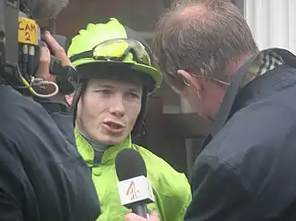 Jamie Spencer (born 8 June 1980, in County Tipperary)[1] is an Irish flat racing jockey currently riding in the UK. He has been champion jockey in both Ireland and Britain and has won seven classics, five in Ireland and two in England.[2] Spencer is an advocate for the art of holding up horses late into the races, and then making use of their natural dash of speed.