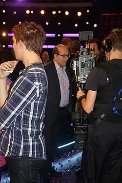 ![]() Jan Scherman interviewing Prime Minister Stefan Löfven of Sweden during Election Day in September 2014 | |