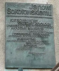 Sokołowski taught nature studies at the Cadet Corps between 1927 and 1937. During this period he designed a nest box for which he obtained a patent. "Sokolowski boxes" were manufactured by the Rawicz prison. He then studied the birds of Poland and habilitated in ornithology in 1936. During World War II he lived with his family in Jędrzejów and Zagnańsk near Kielce and spent time on collection trips into the Zagnańsk region and the Świętokrzyskie Mountains. In 1946 he obtained a post-doctoral degree for studies on the skull of songbirds. He joined the University of Poznan and became an associate professor in 1948 and became a full professor in 1955.[1]