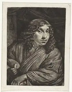 Jan Verkolje or Johannes Verkolje[1] (9 February 1650 (baptized) – 8 May 1693 (buried)) was a Dutch painter, draughtsman and engraver. He is mainly known for his portraits and genre pieces of elegant couples in interiors and, to a lesser extent, for his religious and mythological compositions. He was a gifted mezzotint artist.[2] Trained in Amsterdam, Verkolje spent his active professional career iLien Delft where he had access to powerful patrons.[3]
