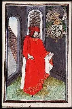 He became an ally of the Dauphin, the future Louis XI of France, during his exile in the Burgundian domains (1456–1461), and helped him claim his throne in 1461. His closeness to the new king of France led to his deprivation from office in the Low Countries in 1462–1463, and in 1468 to open conflict with Duke Charles the Bold, who for a time forced him into exile.[5]