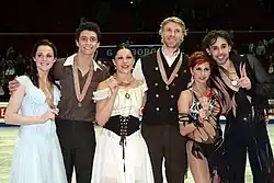 Khokhlova / Novitski with the other dance medalists at the 2008 World Championships