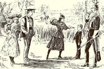The carriage has arrived to take the lovers away, but they can't cross the river without the boat. Jane Annie hypnotises Caddie, who has hidden the key in an undisclosed location on his person. When he gives up the key, Miss Sims catches them. Jane Annie hypnotizes her into giving her blessing, and then she hypnotizes the Proctor into paying for their expenses. Jack refuses to accompany Jane Annie, so she hypnotizes him as well, and he agrees to love her. The happy couples escape, and when the spell is broken, Miss Sims and the Proctor realise that a joke has been played on them, and their reputations are ruined. The Proctor attempts to get a moral out of it, but since he can't recall it, he suggests "you'd best go home without it". Caddie would suggest that the moral is "no more Good Conduct prizes", but the others don't allow him get a word in on the matter.