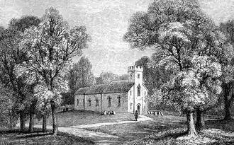 George Austen and Cassandra Leigh were engaged, probably around 1763, when they exchanged miniatures.[17] He received the living of the Steventon parish from Thomas Knight, the wealthy husband of his second cousin.[18] They married on 26 April 1764 at St Swithin's Church in Bath, by licence, in a simple ceremony, two months after Cassandra's father died.[19] Their income was modest, with George's small per annum living; Cassandra brought to the marriage the expectation of a small inheritance at the time of her mother's death.[20]