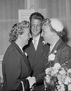 ![]() Marriage of Annie de Groot and Mr. Smits in 1953; Jannie congratulates her twin sister Annie. | ||||||||||||||||||