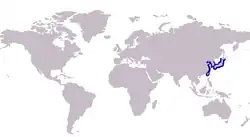 The Japanese whiting ranges from Japan[7] where it was first described, west toward Korea,[8] China and Taiwan, possibly extending as far south as the Philippines, extending to Telaga Air estuarine of Kuching, Malaysia.[6] The species is not only the most common sillaginid of Japan, but is one of the most common coastal species of any family, often making up a significant proportion of shallow water samples.[9]