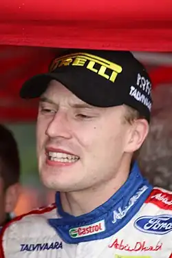Jari-Matti Johannes Latvala (Finnish pronunciation: [ˈjɑriˌmɑtːi ˈlɑt.ʋɑ.lɑ]; born 3 April 1985) is a Finnish rally driver who has competed in the World Rally Championship (WRC). His co-driver for most of his career was Miikka Anttila, who co-drove for Latvala between the 2003 Rallye Deutschland and 2019 Rally Catalunya. He is well known for his aggressive driving style, which earns him many plaudits, and comparisons to the late Colin McRae. With 18 event victories in the WRC, he is one of the most successful drivers to not have won a championship. Latvala is also the driver with the most World Rally starts in the sport which he achieved in 2019, 17 years after his debut.