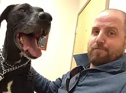 | Bellini with his dog Mikey | |