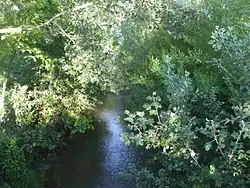 The Jasenica turns north, then northeast south of Topola and, after the villages of Božurnja and Žabare, directly east. Near the village of Natalinci the Trnava (Cyrillic: Трнава) runs into it from the right and changes its direction once more, this time to the northeast. After Mramorac village, the Jasenica spills over in several parallel flows, which continue until its confluence.