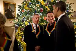 - ^ Photo at the White House Archived 2015-09-22 at the Wayback Machine, The White House flickr account, posted December 6, 2009. The Electronic Frontier Foundation noted that "official photos by the official White House photographer ... aren't copyrightable [and] should instead be flagged as public domain." See D'Andrade, Hugh. "White House Photos – Does the Public Need a License to Use?" Archived 2015-07-12 at the Wayback Machine, Electronic Frontier Foundation, May 1, 2009, accessed July 11, 2015. Techdirt wrote of another White House photo, "the White House is ignoring what that license says in claiming that the photograph 'may not be manipulated in any way.' That's clearly untrue under the law and a form of copyfraud, in that they are overclaiming rights." Masnick, Mike. "President Obama Is Not Impressed With Your Right to Modify His Photos" Archived 2015-07-13 at the Wayback Machine, Techdirt, November 20, 2012, accessed July 11, 2015