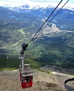 South of town, the Jasper Skytram (purchased by Pursuit in 2025) is an aerial tramway running from the valley floor to the shoulder of Whistlers Peak.[97][98]