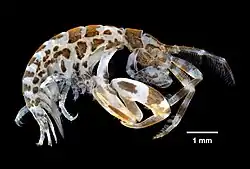 Jassa falcata, commonly known as scud, is a tube-dwelling amphipod.