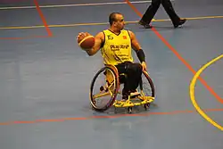 In 2011 in Nazareth, Poland, Llambi competed in the IWBF European Championships, where his team finished third.[2][10] He competed in wheelchair basketball at the 2012 Summer Paralympics in London.[2] It was the first time the Spain national team had qualified for the Paralympics in 16 years.[2] The team, coached by Oscar Trigo, finished fifth.[2] He was one of seven members of the 142 strong Spanish team that had also competed at the 1992 Games.[5][11][12][13][14] With the national team, he won a bronze medal at the 2013 European Championships after defeating Sweden.[15][16] In November 2013, he was awarded a €4,000 scholarship from the Madrid Olympic Foundation to support his efforts to qualify for the 2016 Summer Paralympics.[17]