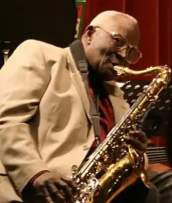 The Harmonic Festival, the Mostly Jazz Festival and the annual International Jazz Festival run alongside the year-round contemporary programme presented by promoters and development agency Birmingham Jazz, directed by Tony Dudley-Evans. The musician-led Cobweb Collective also present regular jazz sessions in several venues around the city. Many other venues support the jazz scene in the city, often promoted by Birmingham Jazz. Jazz musicians associated with the city include Andy Hamilton, Soweto Kinch, Ronnie Ball, Tony Kinsey, Douglas "Dougle" Robinson[4] and King Pleasure and the Biscuit Boys,[13] a group formed in 1986 around saxophonist-singer Mark Skirving (born 13 March 1966, pseudonym "King Pleasure")[Note 1] originally called Some Like it Hot (later The Satellites) before assuming the current (as of 2015) name.[14]