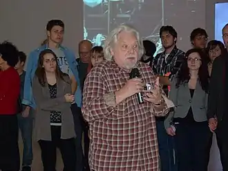 Jean-Jacques Lebel (French: [ləbɛl]; born 30 June 1936, Paris) is a French visual artist, poet, art collector, writer, political activist, and creator of performance art happening art events. Besides his heterogeneous artworks[1] and poetry, Lebel is also known for his very early work with the Beat Generation and Happenings, as an art theory writer with close ties to Félix Guattari, Gilles Deleuze and the American poetry and art scene. He is also an art curator and son of Robert Lebel; a poet, translator, poetry publisher, political activist, art collector, art historian and expert in the work of Marcel Duchamp.[2]