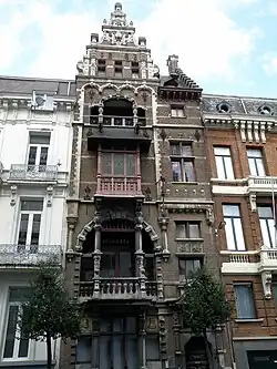 His first remarkable assignment was the Monument Schelde Vrij in Antwerp. He won the design competition for the monument in 1873, and although it was supposed to be finished by the next year, delays postponed its inauguration, which took place in 1883.[2][3] Another important assignment was the Royal Museum of Fine Arts in Antwerp, which he designed with Frans Van Dijk.[3][4] Winders' style was initially eclectic, but in the late 1870s he drastically change his style to Flemish neo-Renaissence style, of which he became one of the most important exponents.[3] His most important work in this style is his own house, Den Passer on Tolstraat in Antwerp.[3]