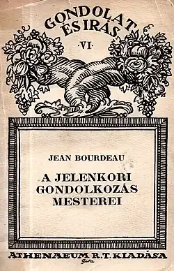 Jean Bourdeau (28 June 1848 – 8 September 1928) was a French writer, known for his books on aspects of socialism. He was also a translator of Schopenhauer, and an early adopter in France of some of the thought of Nietzsche. He wrote on a wide range of subjects, from Johannes Janssen to Maxim Gorky and the rising personality cult of Lenin. He contributed in particular to the Journal des Débats, on contemporary philosophy