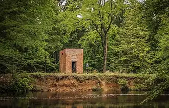 It is located across the Big Cypress Bayou waterway from Jefferson and Cypress Bayou Railway. It is claimed by the railway operators and tour guides to be the only remaining Confederate powder magazine from the 1860s. That claim, appearing at this website advertising a train tour, appears to be false, as it does not take into account powder magazines that are included in surviving confederate forts. A specific counter-example to the claim is the Confederate Powderworks, in Georgia, whose powder magazines disprove the claim. A narrower claim, that it is the only surviving Confederate powder house in Texas and one of few in the U.S., is stated by the Historic Jefferson Foundation.[2] An even more narrow claim, that it is "the most intact example in East Texas of a Civil War era brick ordnance magazine directly associated with the Trans-Mississippi Department of the Confederate States of America," appears in a planning document prepared by the Texas Historical Commission.[3]