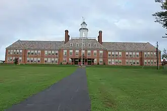 Jeffersonville School is a historic school building located at Jeffersonville in Sullivan County, New York. It was built in 1938-1939 and is a large, expansive, two story Georgian style central school with a below grade basement. The original building is a T-shaped, steel frame and concrete structure with red brick and brickwork ornamentation and surmounted by a slate roof. Architect was H.O. Fullerton of Albany, New York. It is topped by a white, windowed cupola, a four sided clock tower, and a weather vane. It is operated by the Sullivan West Central School as an elementary school.[2]