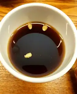 Jeho-tang (Korean: 제호탕) is a traditional Korean cold drink made with honey and several ingredients used in traditional Korean medicine. The ingredients include omae (오매; 烏梅, "smoked unripe plums"), sain (사인; 沙仁, "medicinal cardamom"), baekdanhyang (백단향; 白檀香, "white sandalwood"), and chogwa (초과; 草果, "black cardamom").[1] The powdered ingredients are mixed together with honey and water and then boiled.[2] After the liquid is chilled, it is diluted in cold water.[2] It was considered the best summer drink in Korean royal court cuisine.[2][3]