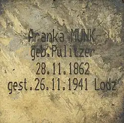 Jenny Steiner, née Politzer or Pulitzer, was born in Budapest, the daughter of Siegmund Pulitzer and his wife Charlotte (1833-1920),[1] into a wealthy Jewish family of factory owners. Her sister was the Klimt supporter and confidante Serena (Sidonie), (married name Lederer); her great-uncle was Joseph Pulitzer, the American publisher and founder of the Pulitzer Prize. Her sister Aranka, (married name Munk), was murdered with her daughter Lola in the Litzmannstadt ghetto during the Holocaust.[2][3]