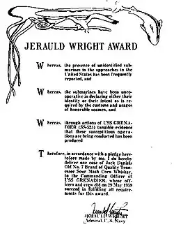 - ^ Blind Man's Bluff: The Untold Story of American Submarine Espionage, pp. 58–59; USS Grenadier SS-525 Home Page Archived 2008-11-19 at the Wayback Machine; "Adm. Wright's Enthusiastic Zeal is Remembered and Is Honored" – The Virginian-Pilot, p. A14 (May 12, 1995)