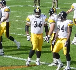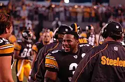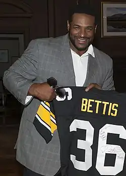 Jerome Abram Bettis Sr. (born February 16, 1972) is an American former professional football running back who played in the National Football League (NFL) for 13 seasons, primarily with the Pittsburgh Steelers. Nicknamed "the Bus" due to his large size and forceful running style, he played college football for the Notre Dame Fighting Irish and was selected 10th overall by the Los Angeles Rams in the 1993 NFL draft. Bettis was a member of the Rams for three seasons before being traded to the Steelers, where he spent the remainder of his career. A six-time Pro Bowl and two-time first-team All-Pro selection, he is regarded as one of the greatest power runners of all time and ranks eighth in NFL rushing yards.[1] He retired in 2006 after helping the Steelers win a Super Bowl title in Super Bowl XL in his hometown of Detroit, the franchise's first in over two decades. Bettis was inducted to the Pro Football Hall of Fame in 2015.[2]