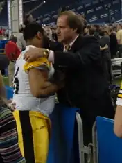 In week 17 of the 2005 NFL season, Bettis rushed for 41 yards and three touchdowns against the Detroit Lions.[28] The Steelers won, 35–21, and thanks to Bettis's three touchdowns, they clinched a playoff berth. When Bill Cowher pulled Bettis from the game late in the fourth quarter, he was given a standing ovation from the Steeler fans. This game would be the last home game (not including the neutral-site Super Bowl) for Jerome Bettis.