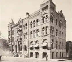 Following a design competition, the architectural firm of James Brite and Henry Bacon was selected and on August 16, 1899, the cornerstone was laid.[11] It was first opened to the public on January 14, 1901.[12][4] It began with 15,515 books in its collection.[2] An addition was added to the rear of the building in 1926.[13]