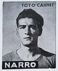 Jesús Narro Sancho (4 January 1922 – 1 July 1987) was a Spanish footballer. As a left midfielder, he was part of Real Murcia for three seasons scoring 21 goals, Sporting de Gijón for part of a season as a loan, scoring one goal and at his peak he was part of the Real Madrid for six seasons scoring 13 goals and being part of the team that won the league title in his final season in La Liga with the team "merengue" along with the great Alfredo Di Stéfano.