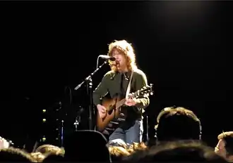 Welles has opened for such rock bands including Dead Sara,[17] Greta Van Fleet,[18] Rival Sons,[19] and Royal Blood.[18] In February 2019, Welles performed as a headliner at Schubas in Chicago.[9] In 2023, under the name Jesse Welles, he began playing cover songs on TikTok. After his father lived through a heart attack the following year, he began to write folk protest songs focused on current events. The songs, addressing topics including capitalism, microplastics and the fentanyl crisis in the United States, garnered attention on social media platforms like TikTok, Instagram, and YouTube.[5][6][10] He has released the singles "Cancer" and "The Olympics",[5] along with "War Isn't Murder", a protest song. His single "United Health", published weeks after the killing of Brian Thompson, criticizes UnitedHeathcare and its founder Richard T. Burke.[20] In September 2024, Welles played Farm Aid; he was introduced by Dave Matthews as "one of the best songwriters I’ve ever heard in my life."[10] He performed on Jimmy Kimmel Live in April 2025.[21]