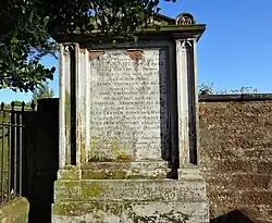 Jessie lived in Dumfries at Maxwelltown, for the remainder of her life, dying at the age of 77 on 26 May 1855;[7] her husband, James Thomson, having died on 5 May 1849, aged 75.[4][8][9] Jessie and her husband were buried in a grave situated opposite to the Robert Burn's mausoleum in Saint Michael's churchyard, Dumfries.[4]